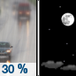 Partly to mostly cloudy with patchy light rain and isolated showers and thunderstorms this evening,clearing to a mostly clear night.Light winds.